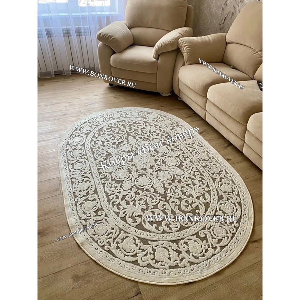 Импозантный Овальный Шелковистый Ковер Для Гостиной Дизайн 22263 наполняет интерьер помещения теплом и уютом, гармонично сочетает в себе изящество и красоту. Он соткан из современных материалов, прочный и долговечный.