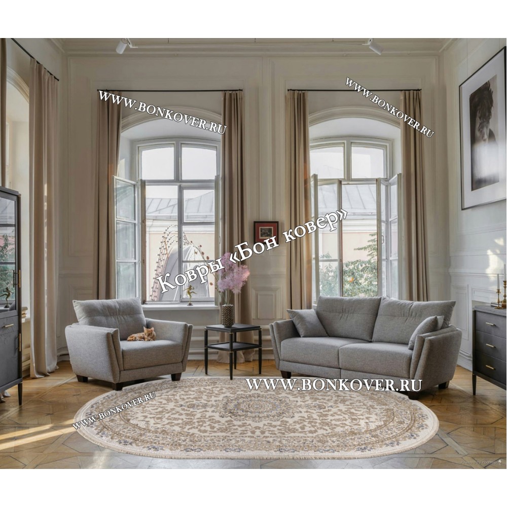 Шикарный Турецкий Ковер Для Гостиной Медальон Дизайн 06 Овал наполняет интерьер жилого пространства теплом и уютом, гармонично сочетает в себе изящество и красоту. Он выполнен из высококачественных материалов, комфортный и долговечный.